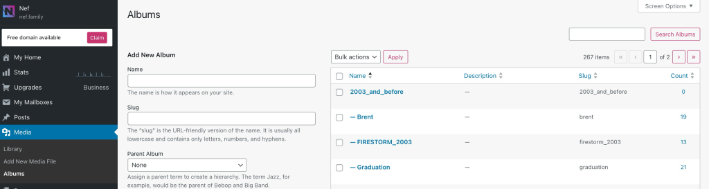 Originally, I thought about migrating to a new site. I decided to stay with WordPress, but the sticking part was migrating the photo albums. In order to support my goals, I made the decision to use the WordPress built-in media library and taxonomies.